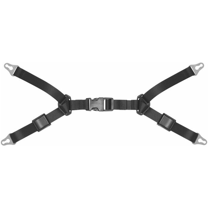 Hakremmen med 4-punktsupphängning och instickslås säkerställer att hjälmen sitter säkert på plats. Bredd 20 mm.