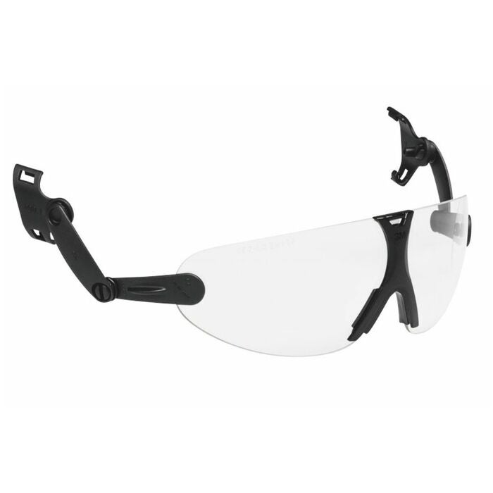 Skyddsglasögon av polykarbonat med hjälmfäste för direktinfästning på skyddshjälmar. Om inget ögonskydd krävs kan skyddsglasögonen lätt tryckas under hjälmen.
