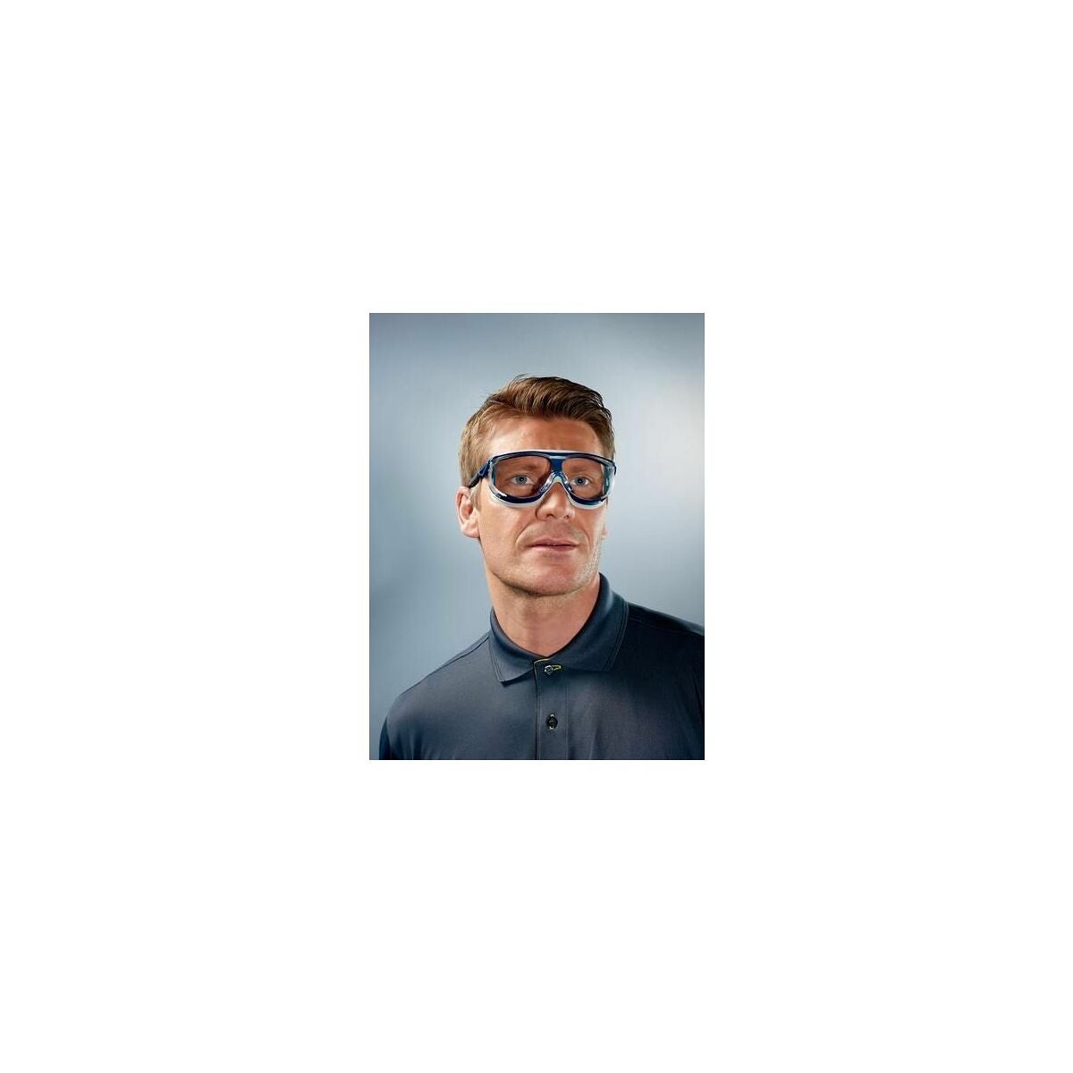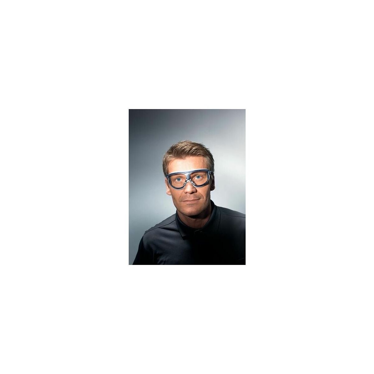 Skalmglasögon med brett synfält. Den permanent påsprutade TPU-anliggningsytan skärmar av ögonen fullständigt från kringflygande partiklar.