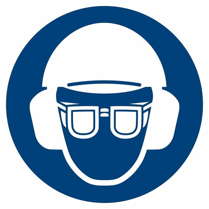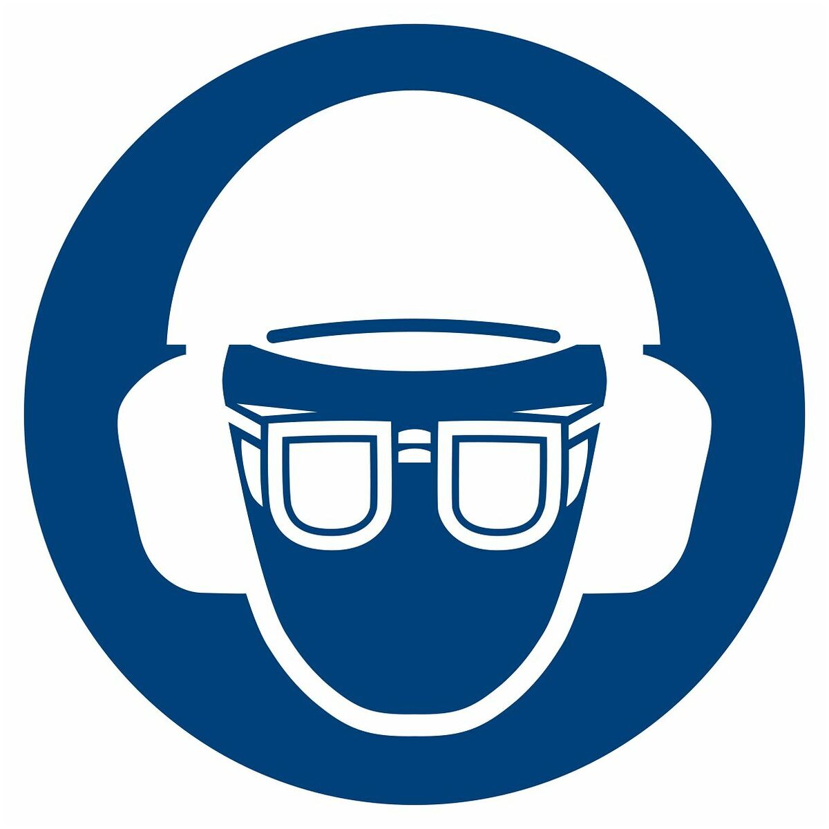 Påbudsskyltar Använd ögon-, hörsel- och huvudskydd