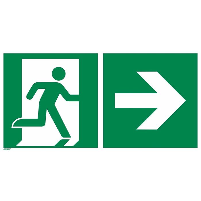 Utrymningsskyltar, ny standard Utrymningsväg höger