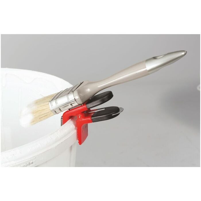 Praktisk penselhållare med två magneter och färgburksöppnare, för penslar med plåtbeslag.