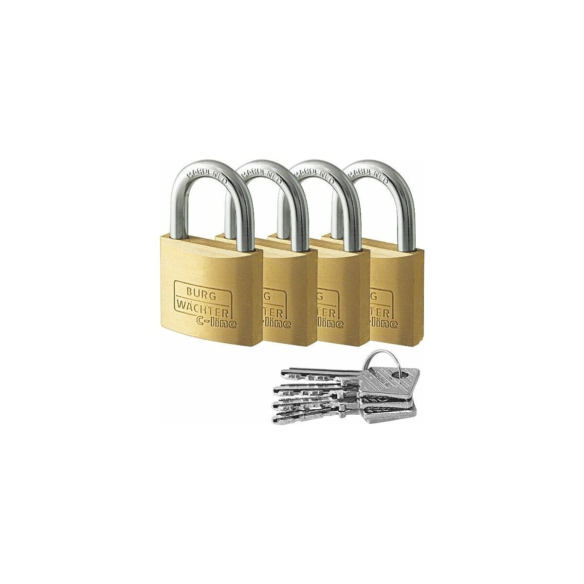 4 hänglås med vardera 1 nyckel.