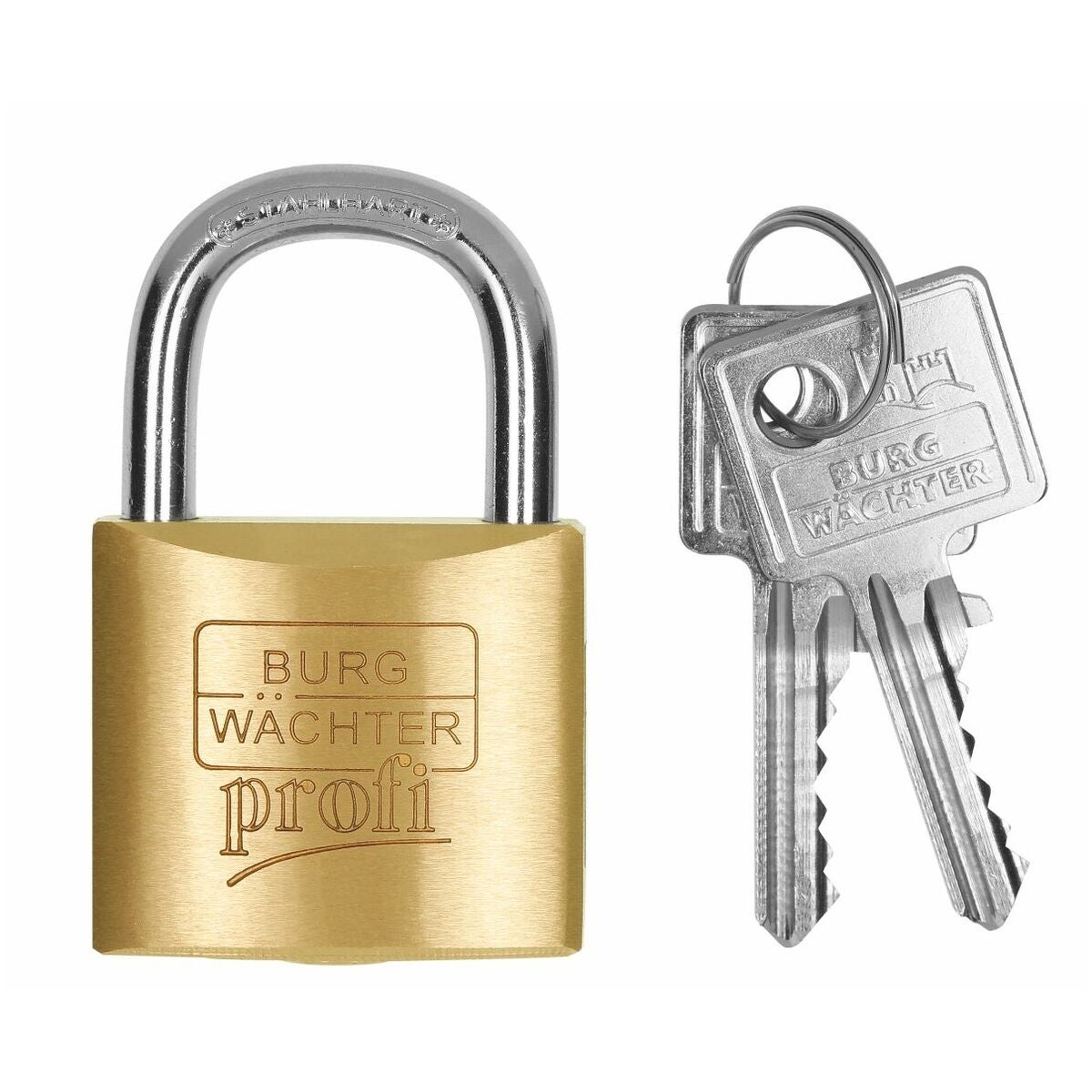 Massiv mässingsstomme, rostfritt precisionslåssystem,härdad och förkromad stålbygel, dubbelregling.