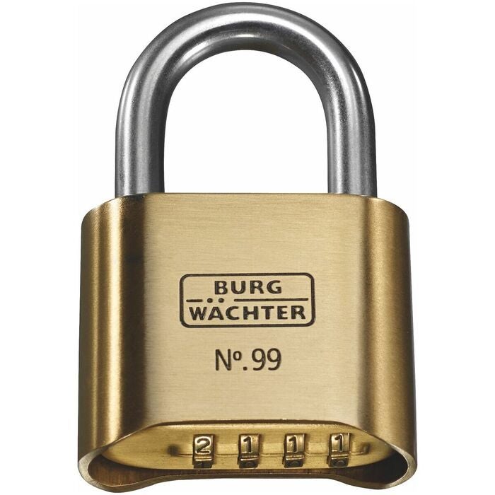 SifferkombinationUtförandeStommen i nr 99 består av massiv mässing. Bygeln är tillverkad av massivt rostfritt stål och är dessutom dubbellåst.