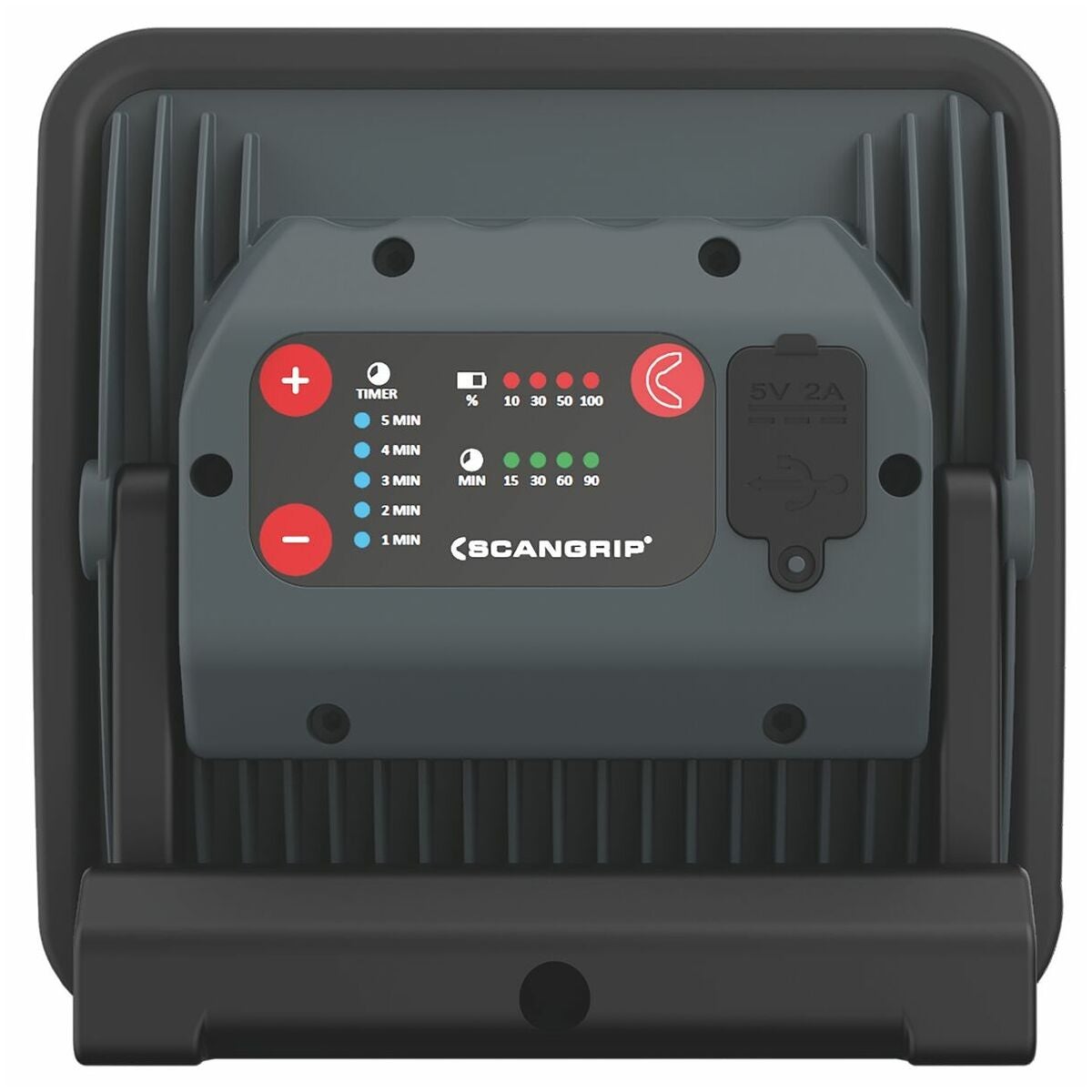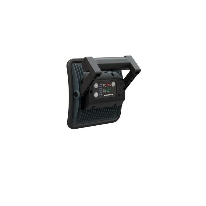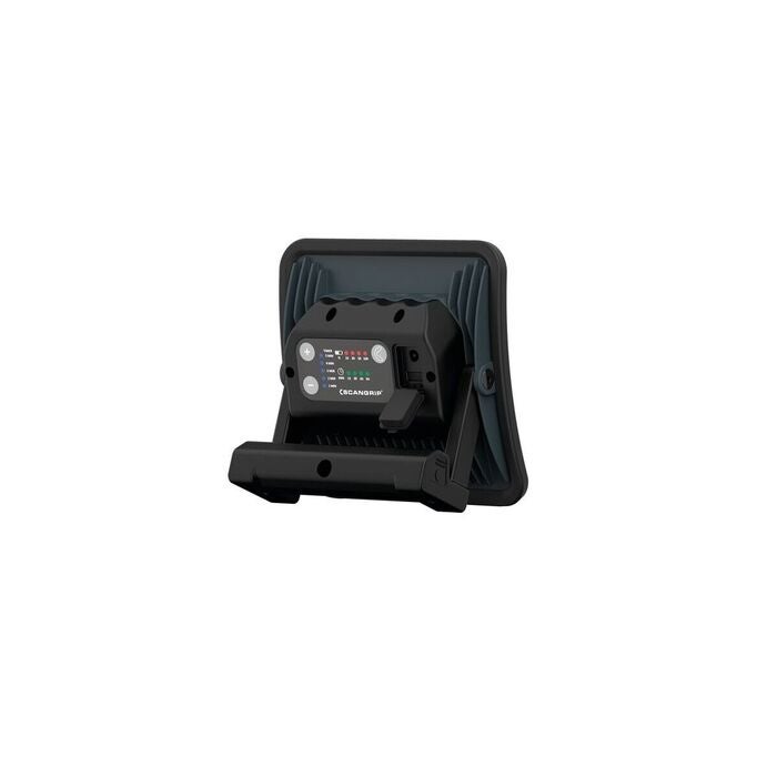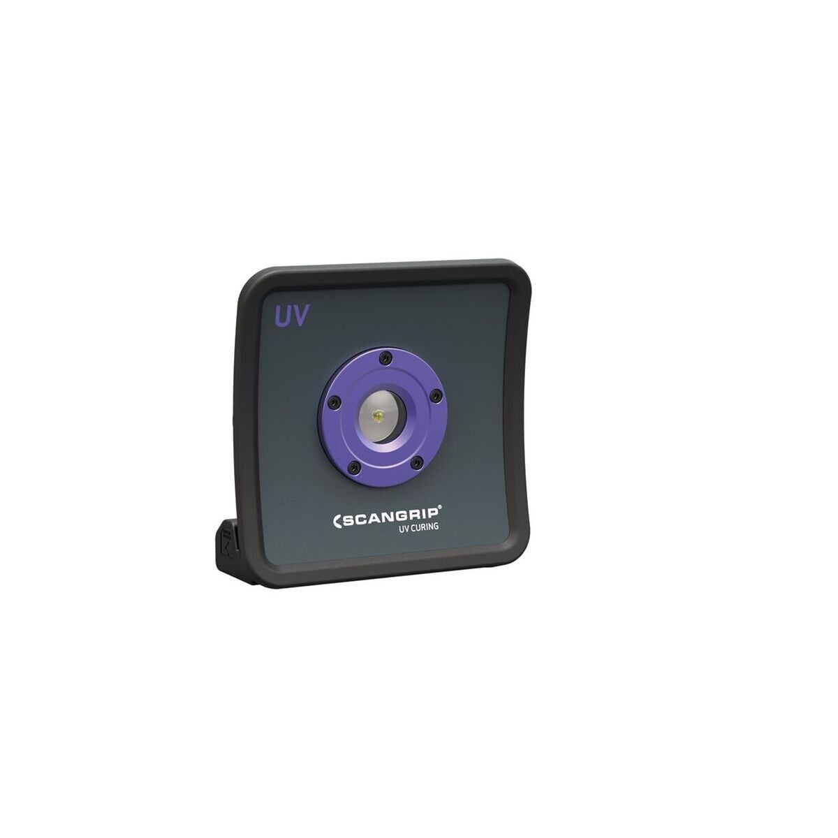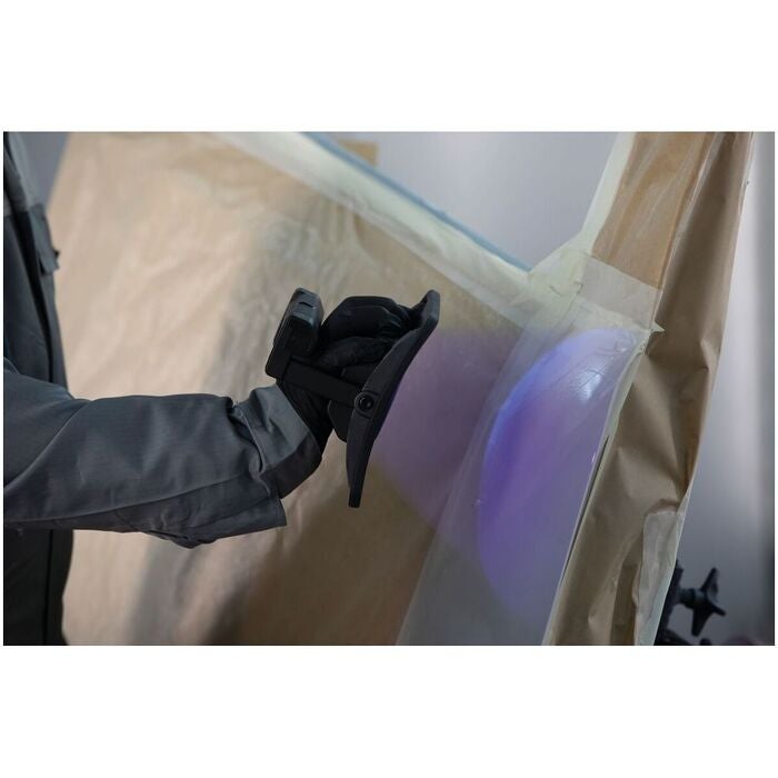 Batteridriven strålkastare för UV-härdning av stora ytor. Härdningsyta Ø 25 cm. Inkl. laddare, litiumjonbatteri (5,4 Ah), inbyggd powerbank med USB-uttag.