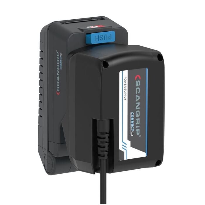 Scangrip CONNECT arbetslampor är baserade på CAS-systemet och är dessutom kompatibla med 18 V batterier från alla ledande elverktygstillverkare.