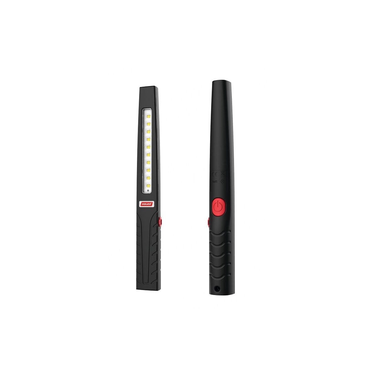 Robust, smal batteridriven LED-stavficklampa med gummerad yta, hållarmagnet och extra LED-lampa på lamphuset. 3 olika belysningsinställningar (spot, starkt ljus, nedtonat ljus). Uppladdningsbar via ett USB-C-gränssnitt. Perfekt som inspektionslampa i trånga utrymmen.