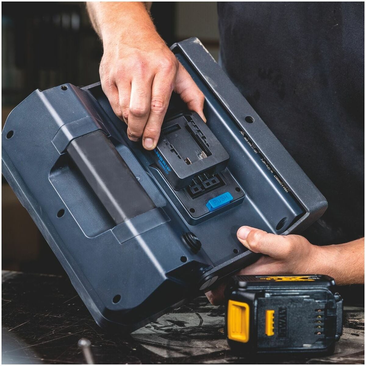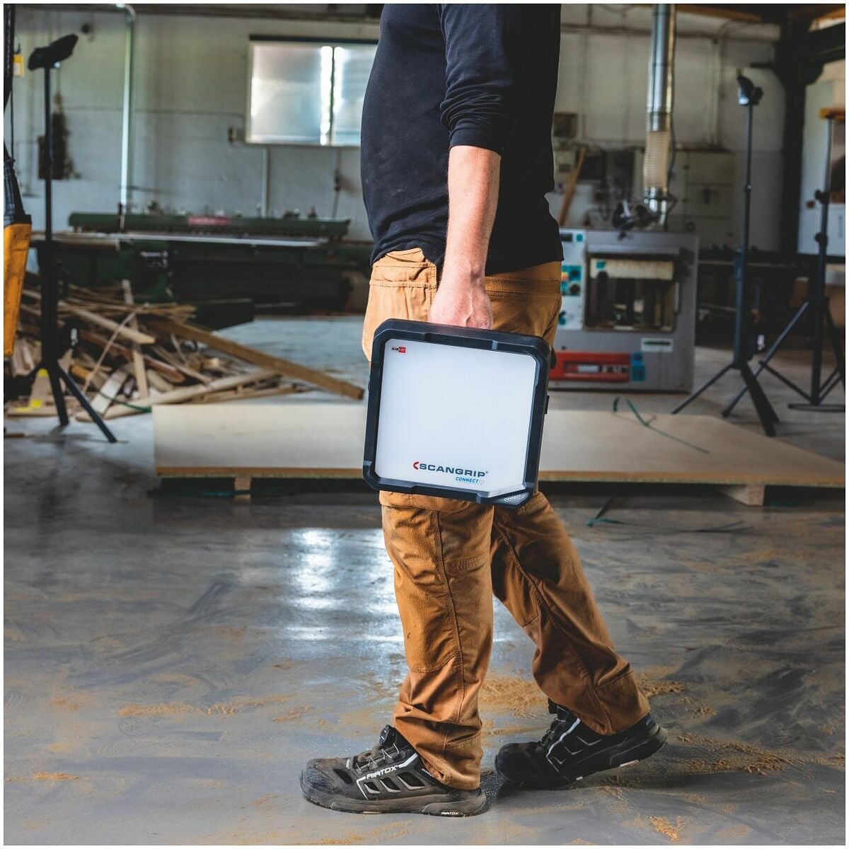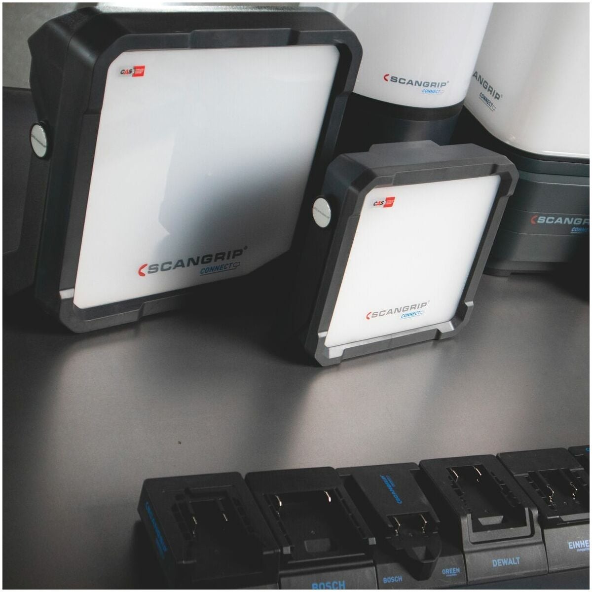 Scangrip CONNECT arbetslampor är baserade på CAS-systemet och är dessutom kompatibla med 18 V batterier från alla ledande elverktygstillverkare.