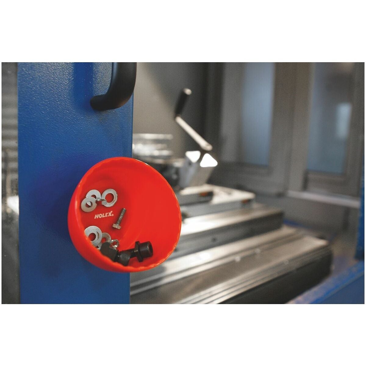 Plastskålar med kraftfulla permanentmagneter. Speciell form för användning på lodräta väggar.