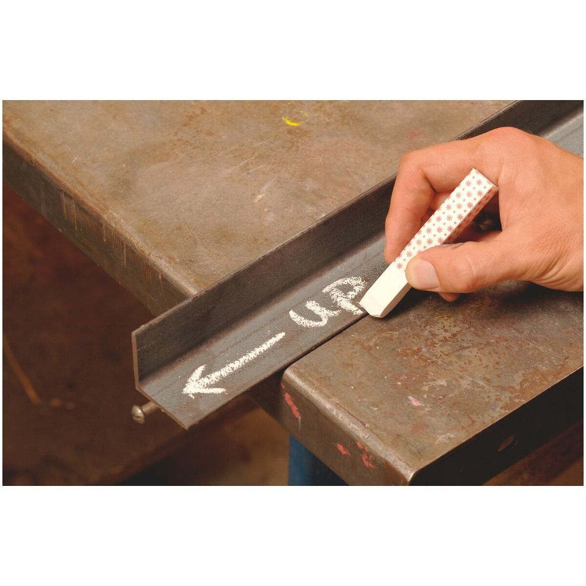 Högkvalitativ vit tavelkrita i pappersfodral. Sats i 12 delar i kartong.