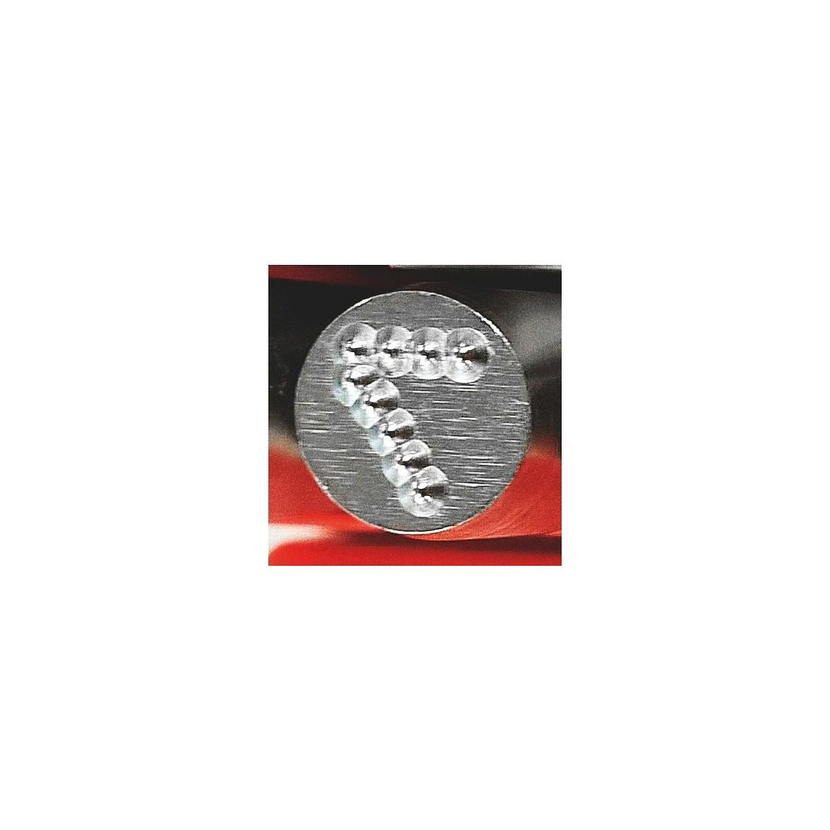Low stress Dotstress handslagstämpel punktförsedd med radiegravyr (halvcirkelform), vilket belastar materialets yta mindre vid prägling.