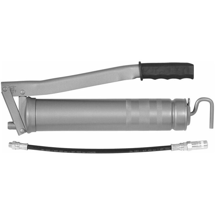 Förstklassigt industriutförande (tomsmörjning utesluten), med steglös kolvstångslåsning. För påfyllning med löst fett (rymmer 500 cm3) eller patroner (400 g).