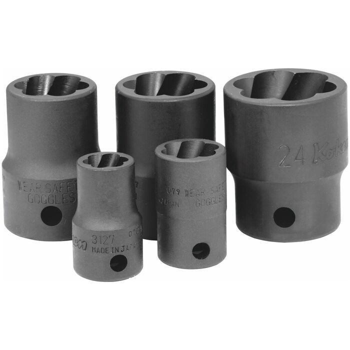 Av seghårt krommolybdenstål. De vassa spiralspåren biter fast i fastsittande eller defekta skruvar/muttrar och lossar dem. Används i kombination med spärrnyckel, T-handtag etc.