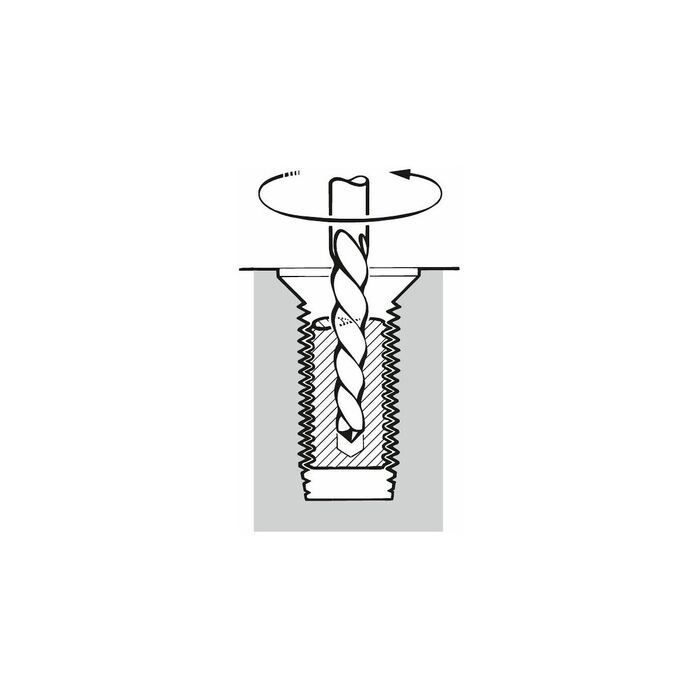 För utskruvning av uppborrade, högergängade skruvar (förborrningshål-⌀ enligt tabellen; skruvutdragaren vrids åt vänster).