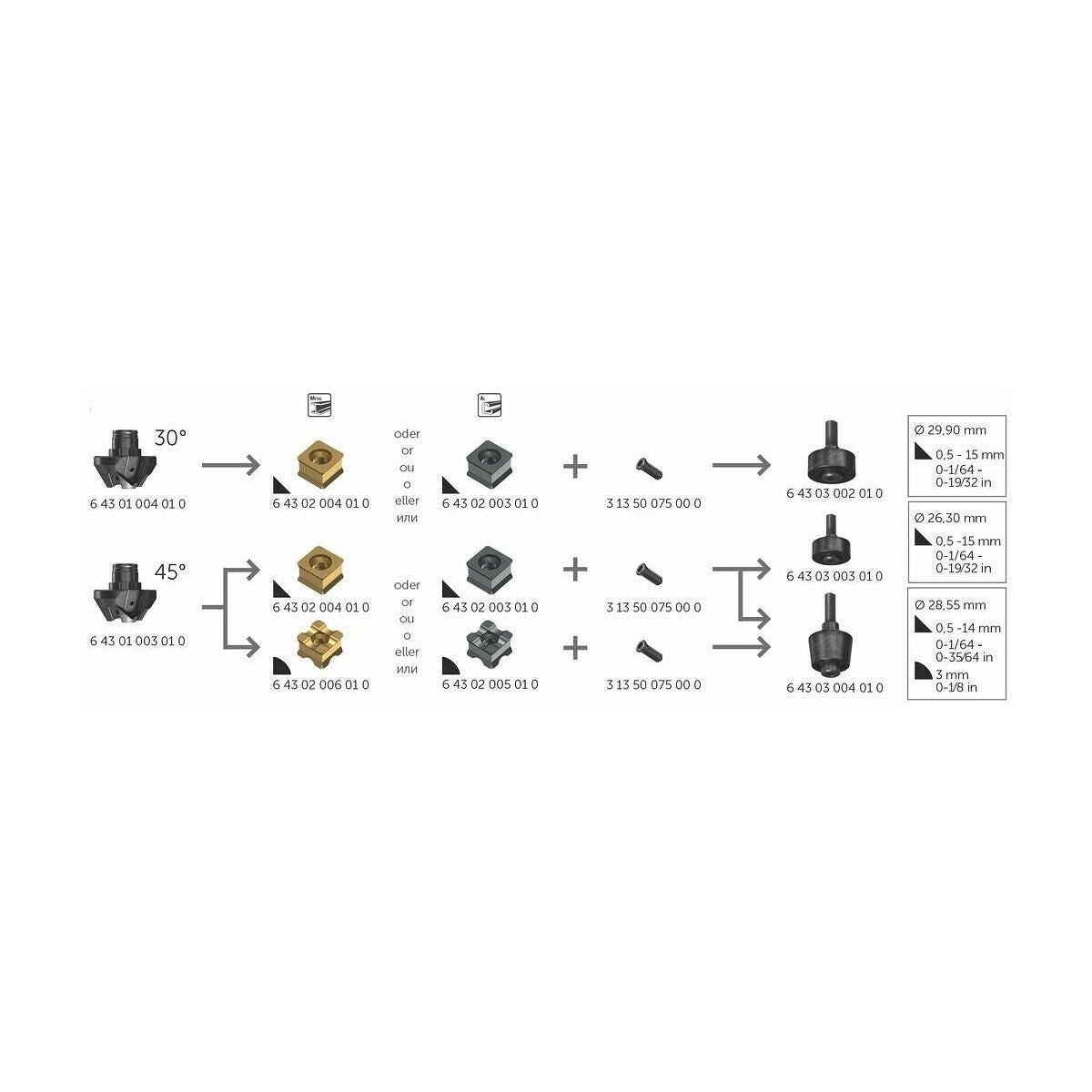 För framställning av faser och radier i platta material, plåtar och behållare, invändiga och utvändiga kanter och konturförlopp samt avrundning av hål.