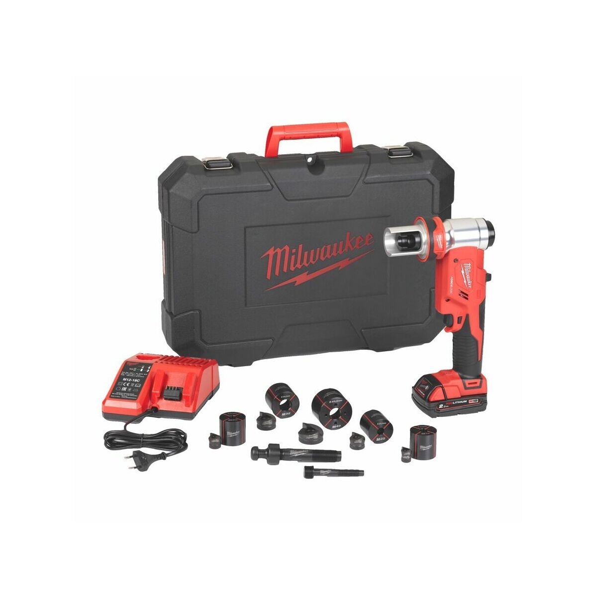 Laddare M12-18C, transportväska, vardera 1 dragskruv 11,1 mm (7/16-20 UNF) och 19 mm (3/4-16 UNF), snabbytessystem med verktyglöst fäste, stämplar och matriser med UNF-gänga för håldimensioner: M16, M20, M25, M32, M40.