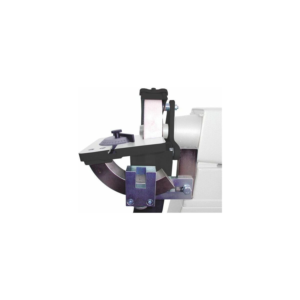 Massivt verktygsbord med vinkelanslag. Kan lutas från − 5° till + 15°. Vinkelanslaget justerbart 2×90°.