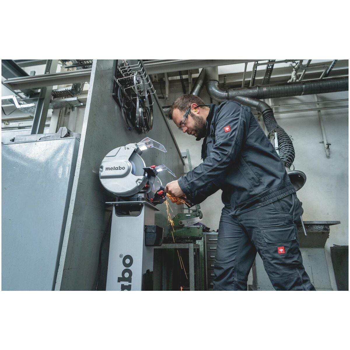 - Maximal arbetssäkerhet tack vare extra stort, stabilt gnistskyddsglas.