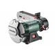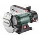 Med normalkorund-slipskiva 60 N, vävt slipband K 60, gnistskyddsglas, arbetsstyckesstöd och insexnyckel.