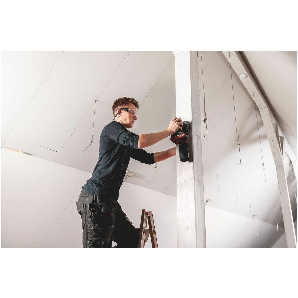 Platt, sladdlös excenterslip med ergonomisk design och låg vikt för mindre trötthet under arbetet.