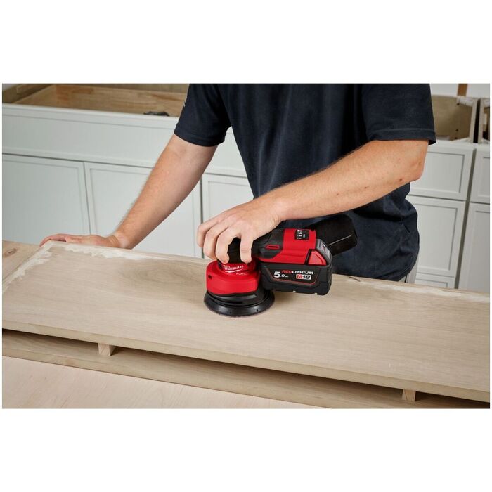 M18 FUEL™ batteridriven excenterslip med 2,5 mm omloppsbana och 12 000 varv/min, vilket möjliggör en snabb och effektiv sliphastighet. Slipen levereras med en sugfunktion samt förbättrad ergonomi och bättre grepp.