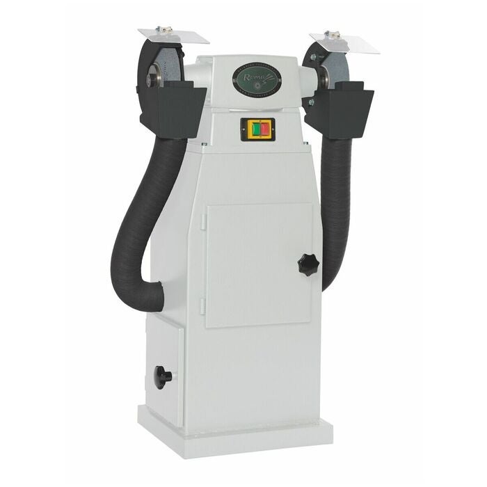 Dubbelslipmaskin med utsug inbyggt i stativet.