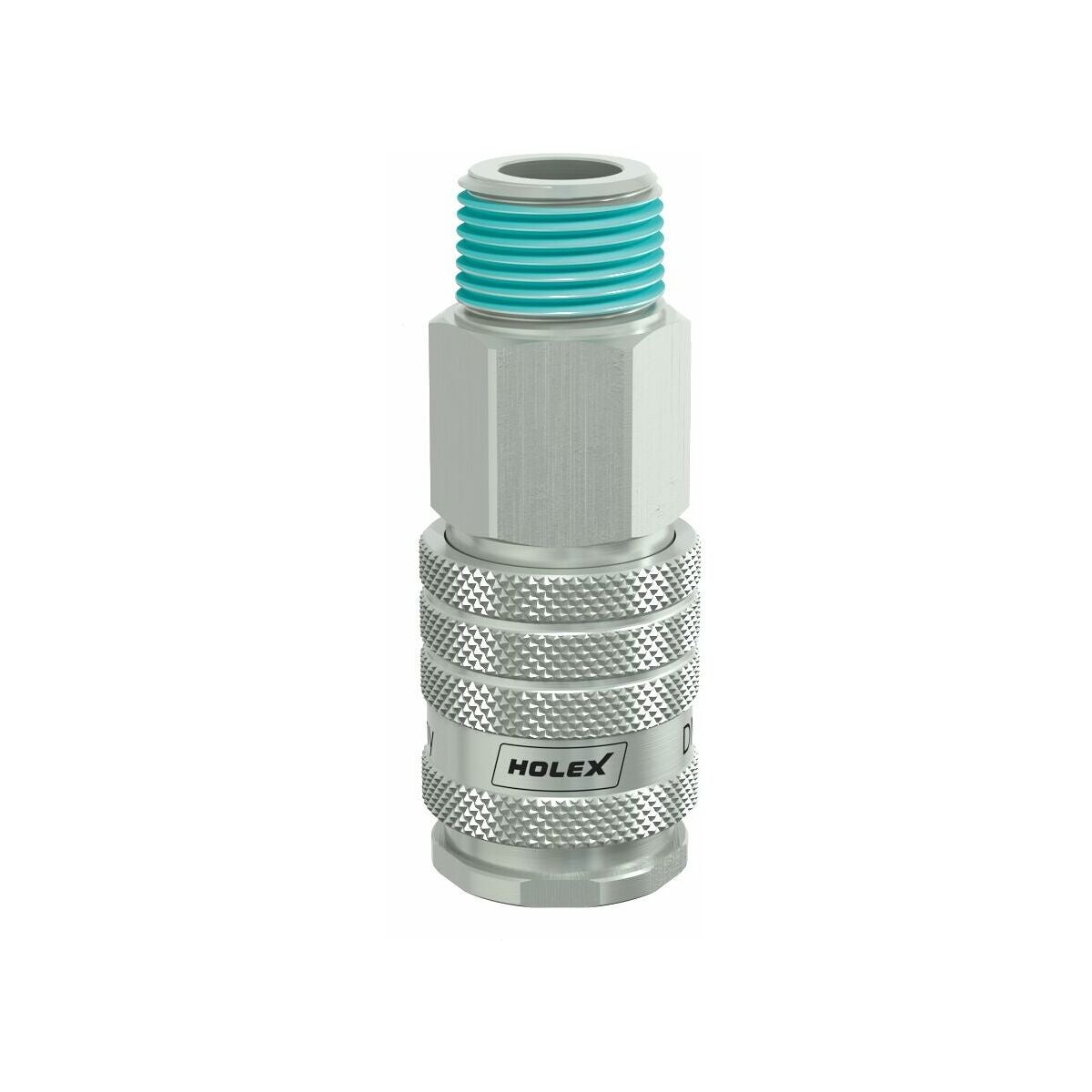 Industrikoppling konstruerad för optimerat, högt flöde 2000 l/min (luft), DN 7,8. Robust, ensidigt stängande snabbkoppling i hög kvalitet. Strömlinjeformad ventil, extremt höga flödeshastigheter, lågt tryckfall, lång livslängd, hög driftsäkerhet och absolut täthet.