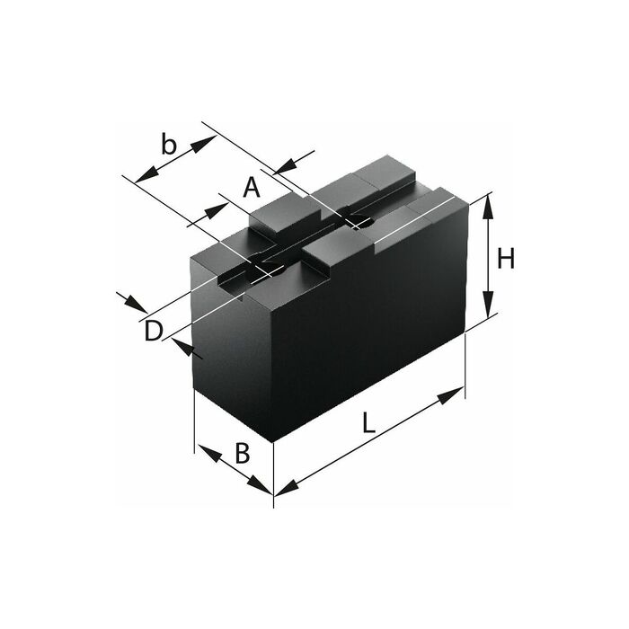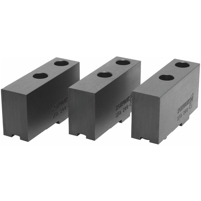 För fastskruvning på härdade grundbackar. För fastspänning av ojämnt formade eller redan bearbetade arbetsstycken som inte får skadas. Backarna bearbetas enligt arbetsstyckets form.