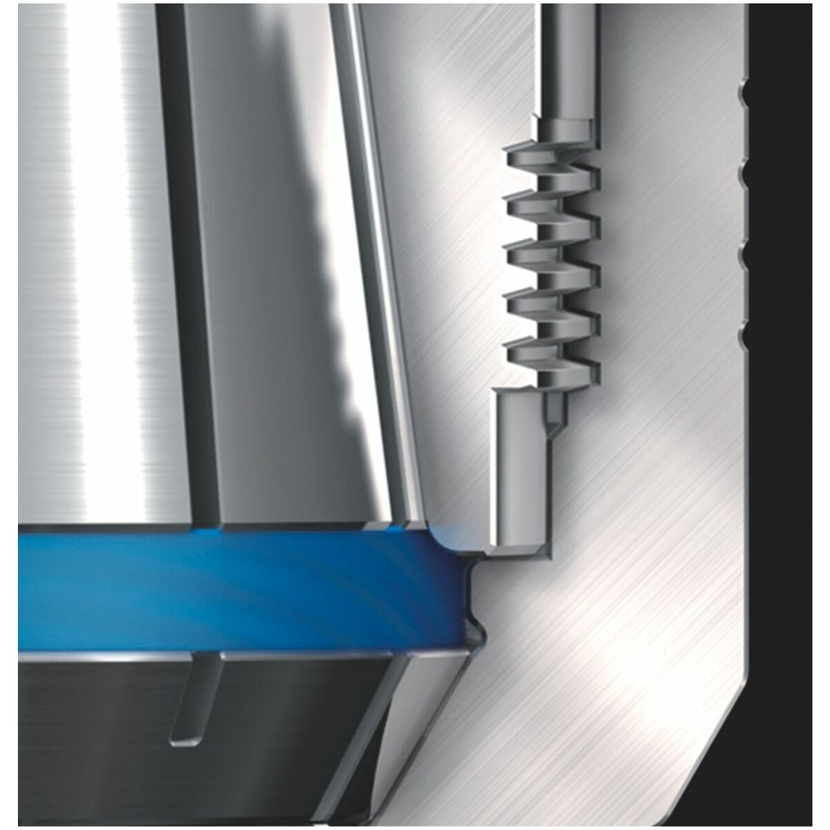 Den patenterade optimala passformen hos spännhylsan, dubbelstyringar, trapetsgänga och gldibelagd spänhylsa smälter vid fastspänningen till en stabil enhet och säkrar därmed högsta styvhet och precision.