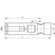 Cylindrisk hållare härdad och slipad med snabbkoppling. Invändig fyrkant med hållare för gängborr resp. överföring av vridmomentet. Klämmekanism förhindrar att gängborren dras ut.