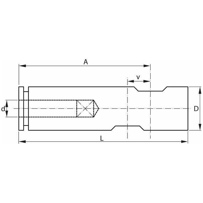 Cylindrisk hållare härdad och slipad med snabbkoppling. Invändig fyrkant med hållare för gängborr resp. överföring av vridmomentet. Klämmekanism förhindrar att gängborren dras ut.
