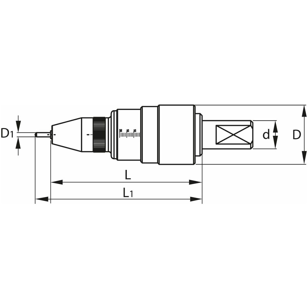 Hölje av aluminium med Weldonskaft. Steglös inställning av förspänningskraften. Stegdjup 0,1–0,3 mm.
