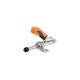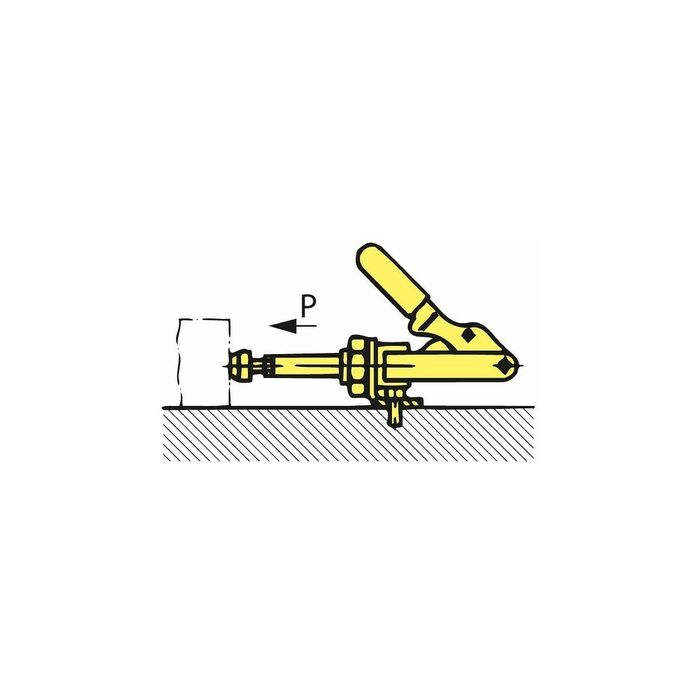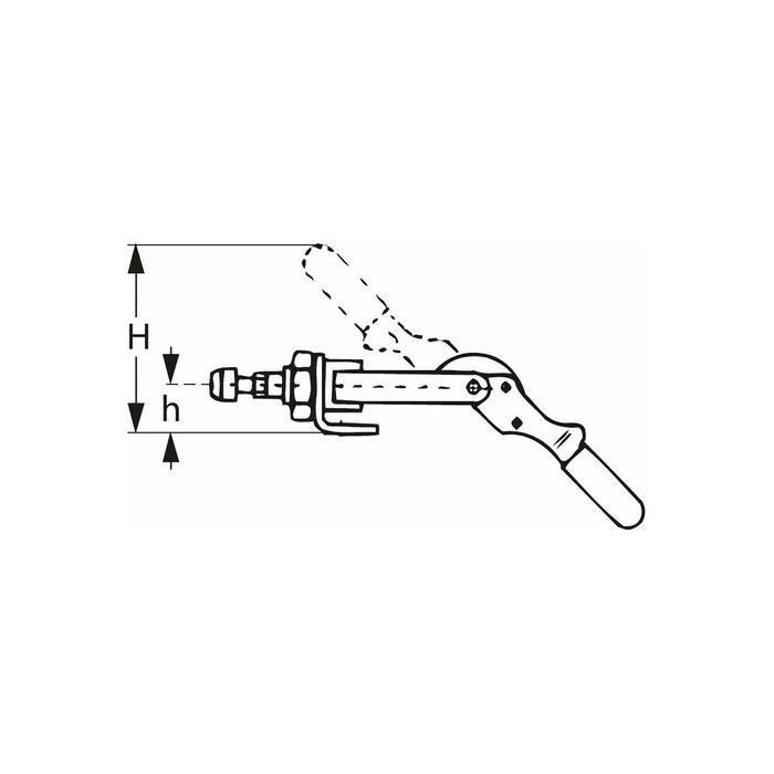 Med kraftutväxling enligt knäledsprincipen. Självlåsningsmekanism motverkar öppning.