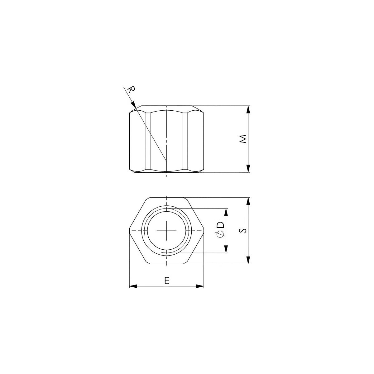 Hög mutter (höjd = 1,5 d) med en plan sida för anliggning mot underläggsbrickor nr 375340 och en konvex sida för anliggning mot koniska brickor nr 375355 D eller nr 375360 G.