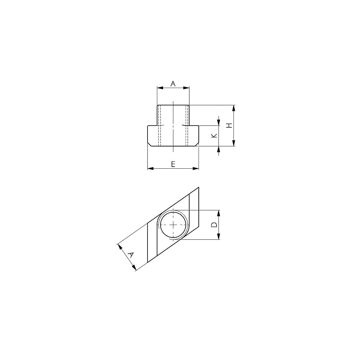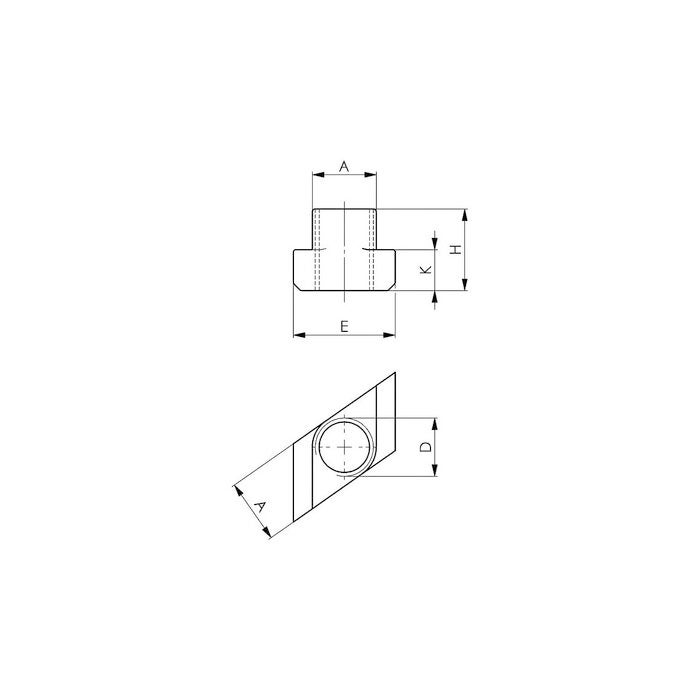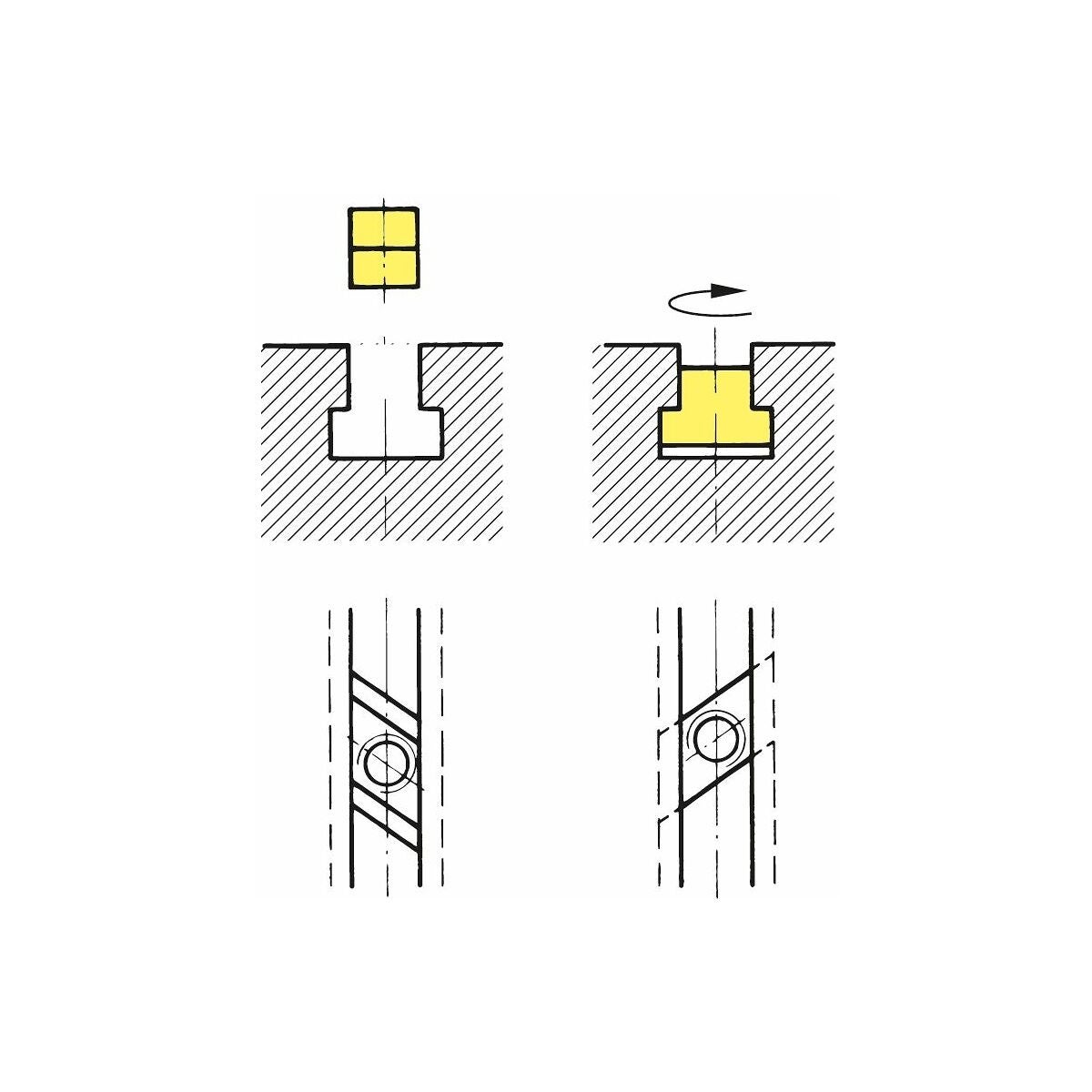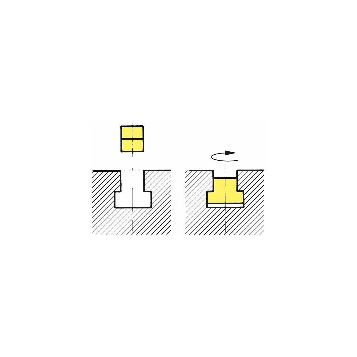 För insättning av spårklacken ovanifrån genom T-spårets hals. (På grund av ändrad anliggningsyta blir bärförmågan lägre än för nr 375315.)