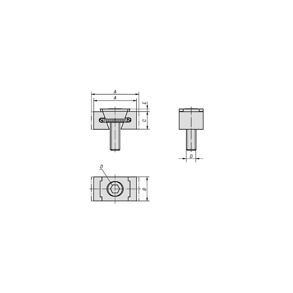 - Kilspännare kan användas i gängade hål eller T-spår.