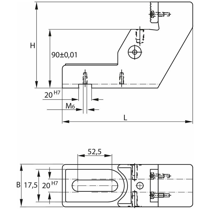 - Monteringshål på sidan för fastsättning av längsgående stopp.