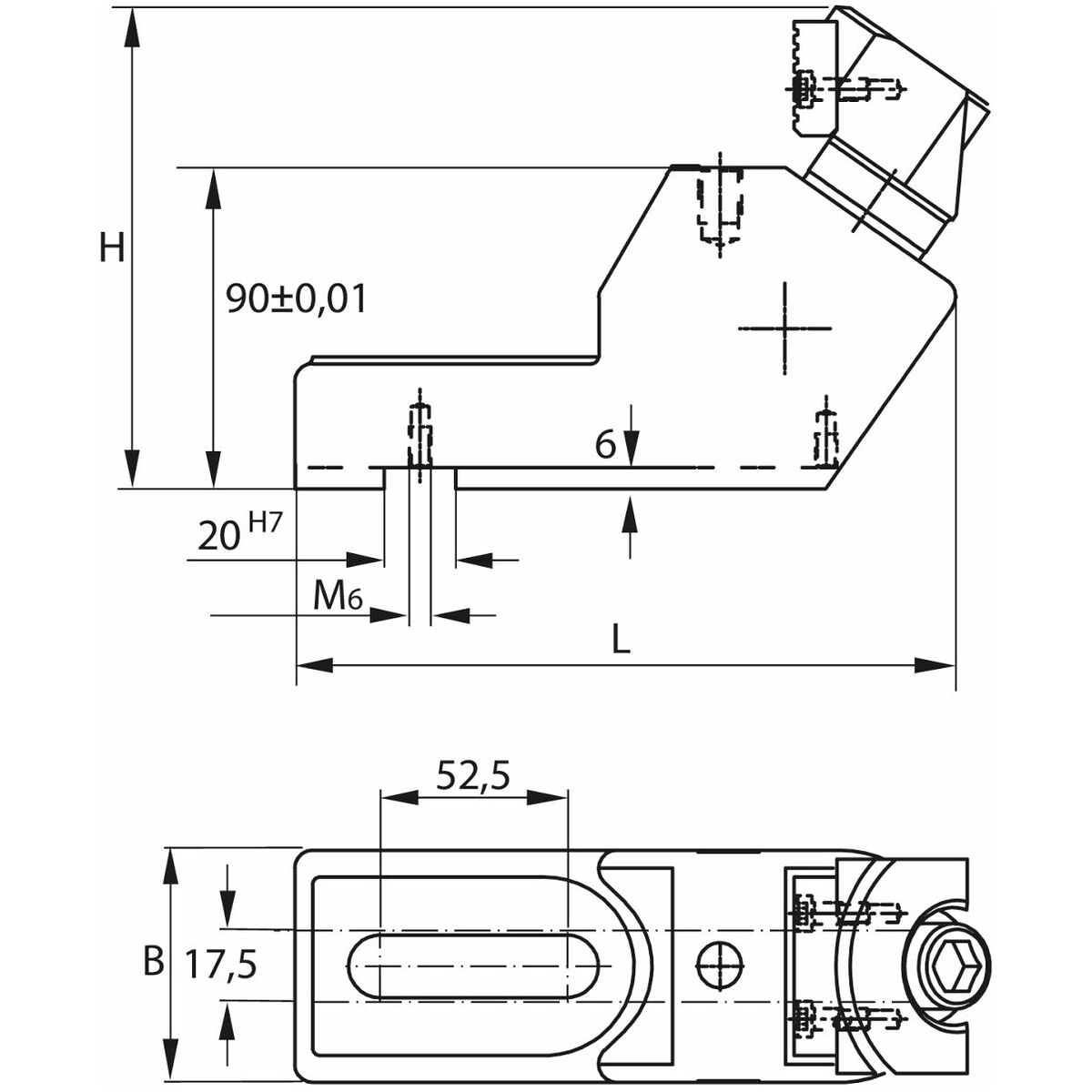 - Monteringshål på sidan för fastsättning av längsgående stopp.