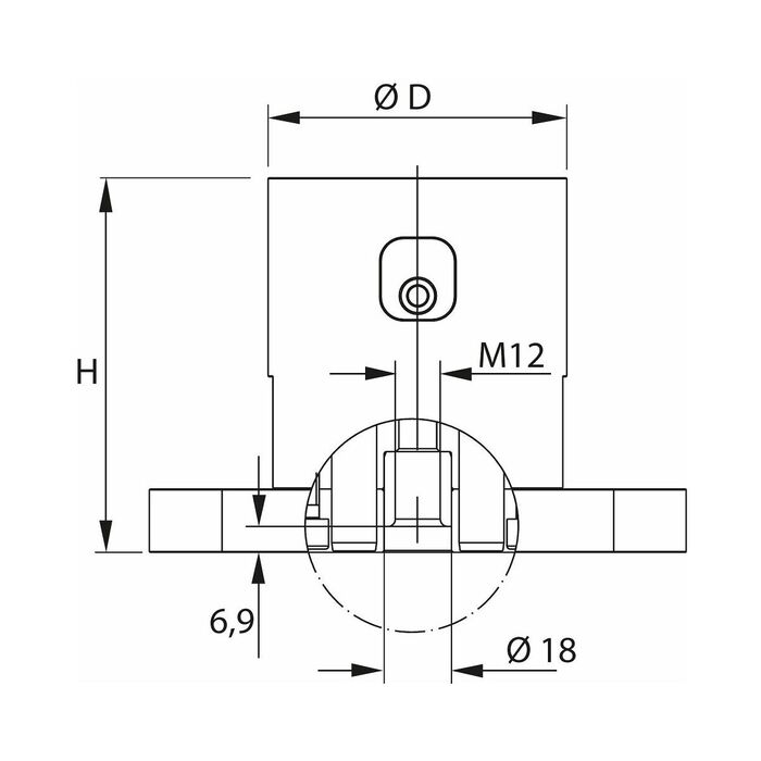 Höjdjustering med en lutning på 3 mm per varv. Max. justeringssträcka 25 mm.