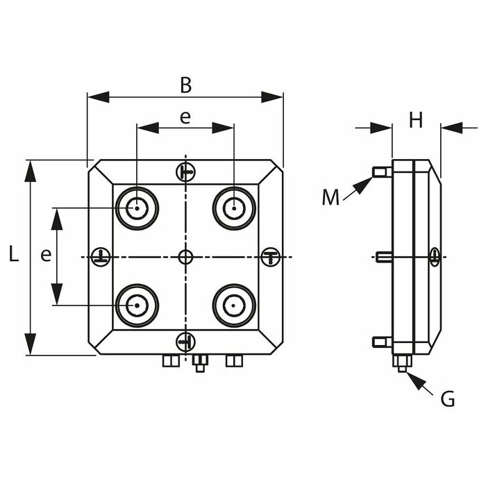 Hållkraft 50 kN, genom 4 satser spännhuvudkomponenter storlek 90, stickmått 80 mm. Samma funktionsprincip som för GARANT ZeroClamp spännhuvuden. Därmed termosymmetri kring mitten. Manuell eller automatiserad fastspänning och lossning är möjlig. Fastspänning via fjäderackumulator – lossning med tryckluft (6 bar).