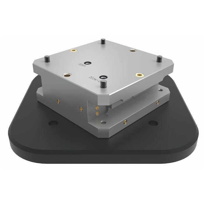 Med hål för spännbultar nr 360025 18M16. Alternativ fastsättning via spännkonsoler eller via M12-skruv i spåret. Fästhålbild för GARANT ZeroClamp nollpunktspännsystem (krysstickmått 200 mm).