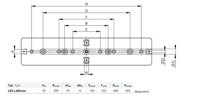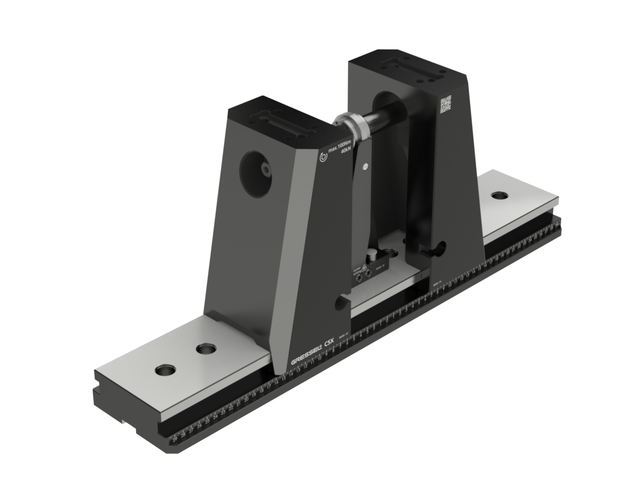 5-axligt centrerande skruvstycke C5X-L L-600 mm, höjd 252 mm. Utan backar och handtag.