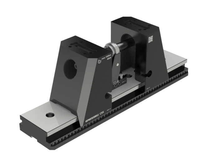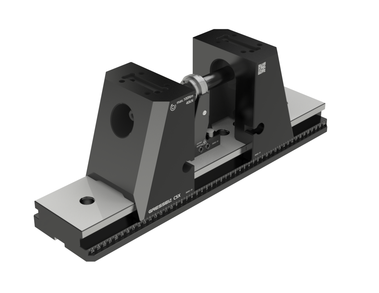 5-axligt centrerande skruvstycke C5X-L L-500 mm, höjd 252 mm. Utan backar och handtag.