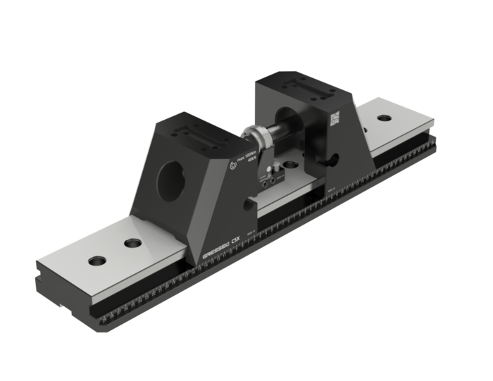 5-axligt centrerande skruvstycke C5X-L L-600 mm, höjd 252 mm. Utan backar och handtag.