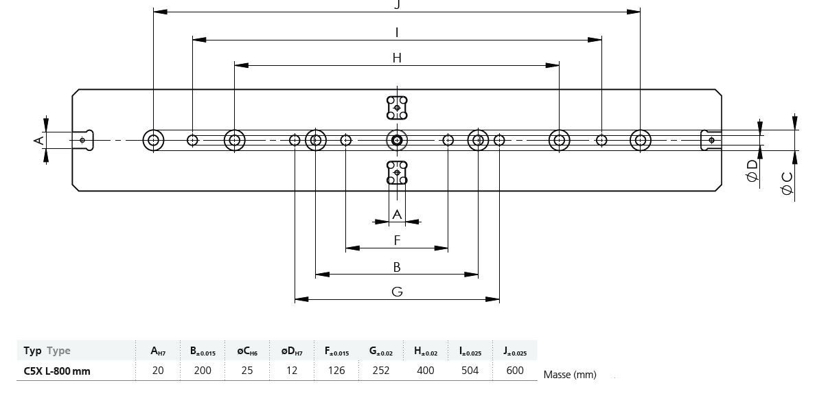 5-axligt centrerande skruvstycke C5X-L L-800 mm, höjd 252 mm. Utan backar och handtag.