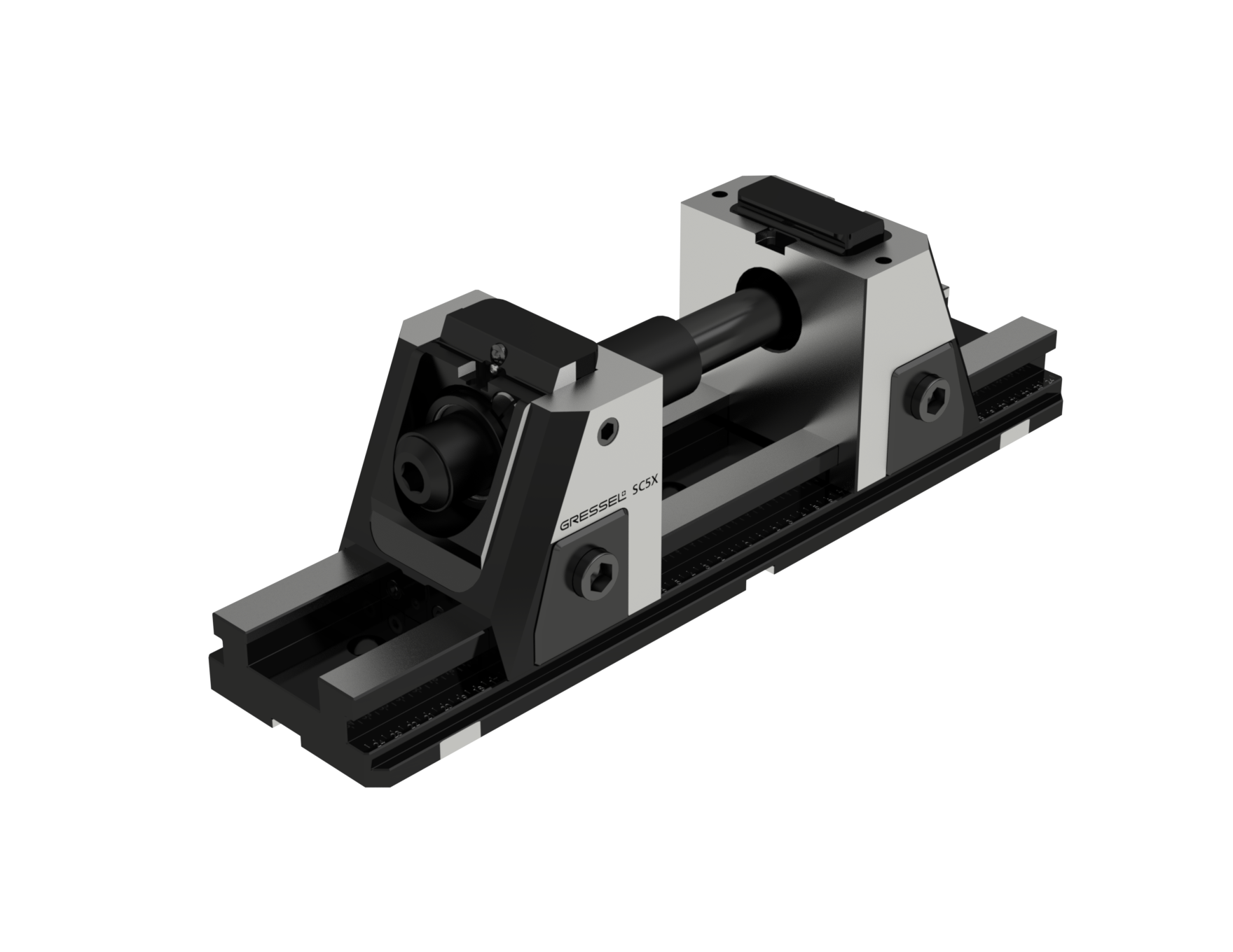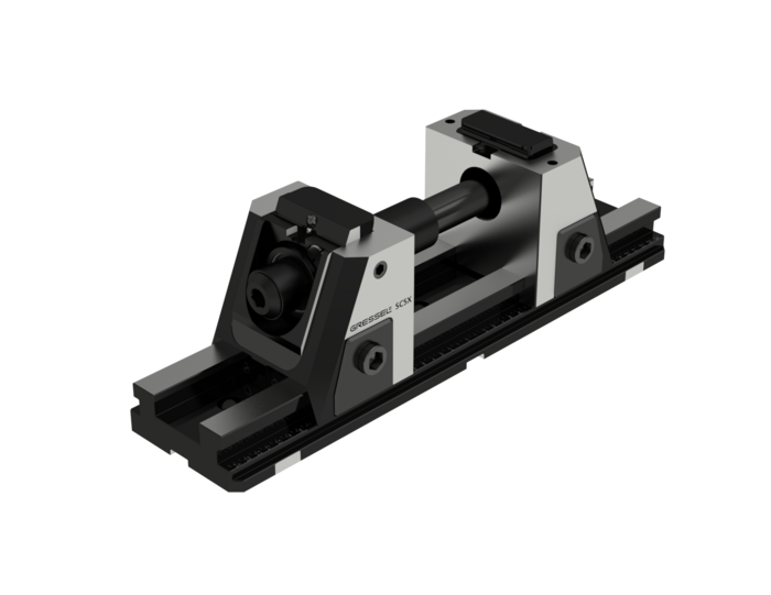 5-axligt mekaniskt skruvstycke SC5X-M L-800 mm, höjd 181 mm. Med flyttbara centrerande backar och baskropp 800 mm. Utan snabbväxlingsbackar, utan spännarm och utan spännklor. Utvecklat för högsta precision, maximal effektivitet och enkel hantering.