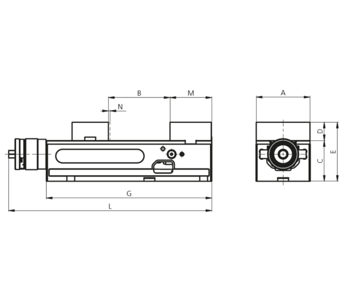 Maskinskruvstycke gripos 160 för stora spännvidder. 2 x baskroppar, dragstångsförlängning.