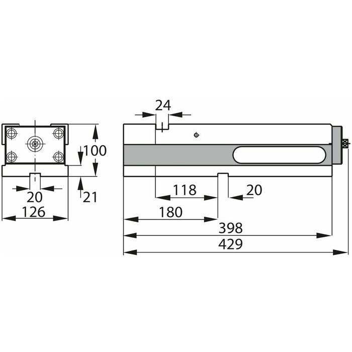 Inklusive hål 25H6 M10 för nollpunktspännsystem c/c 200 mm.