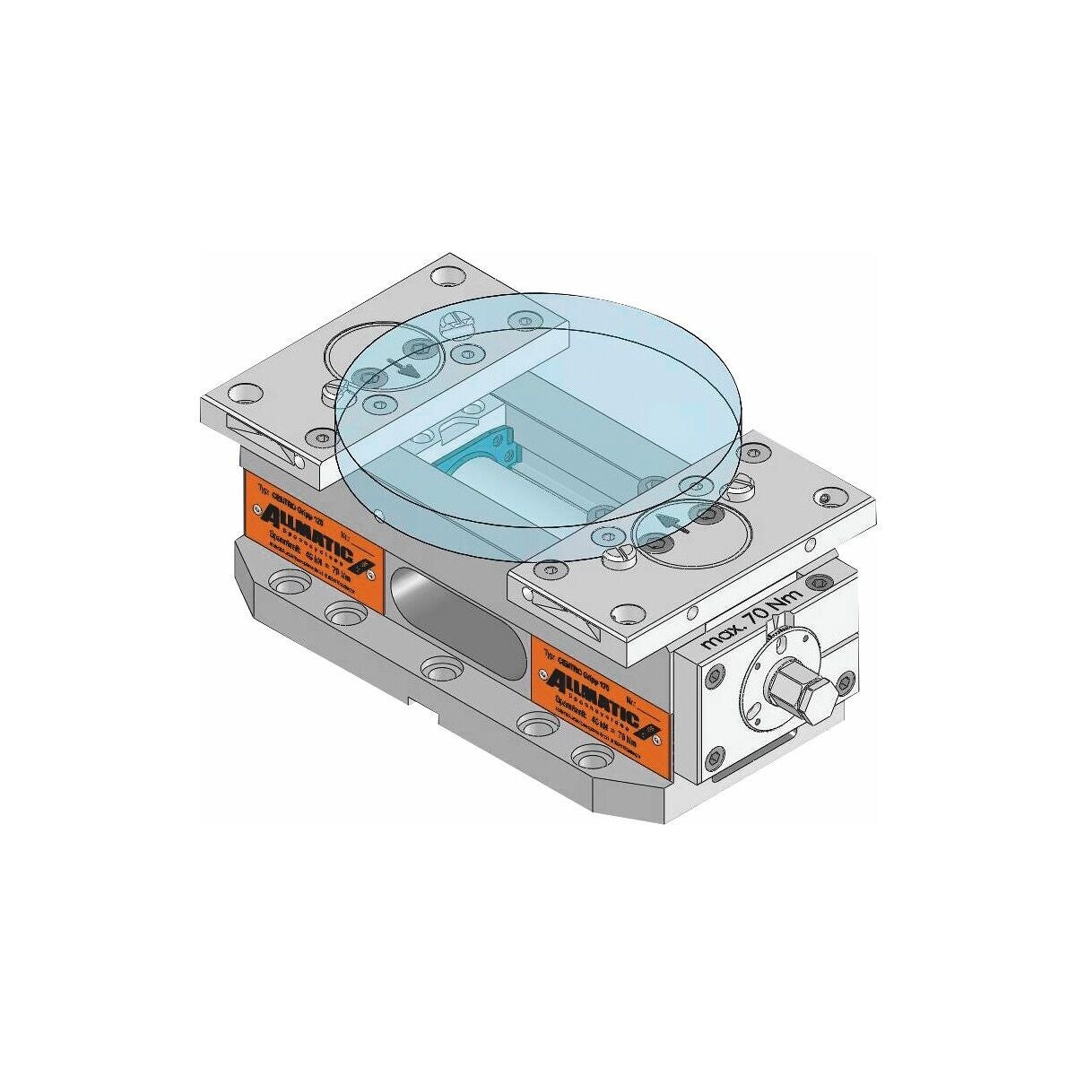 Inklusive hål 25H6 M10 för nollpunktspännsystem c/c 200 mm.